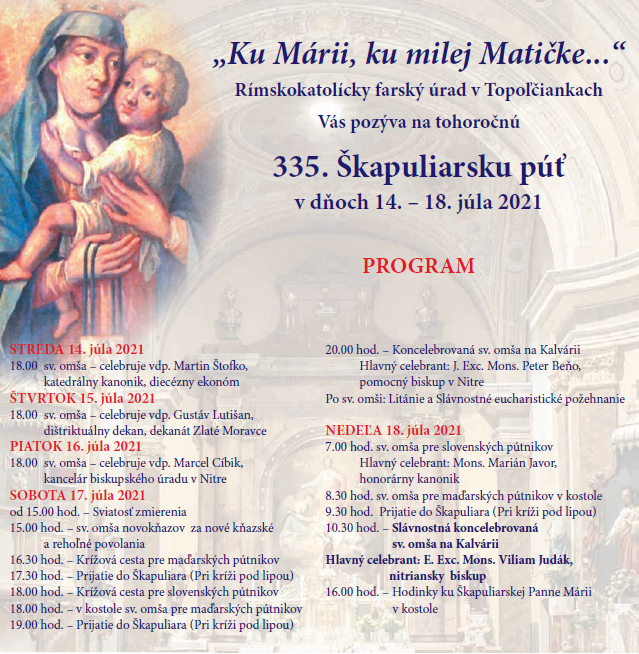 PROGRAM 335. ŠKAPULIARSKEJ PÚTE 14.7. - 18.7.2021 tu k nahliadnutiu