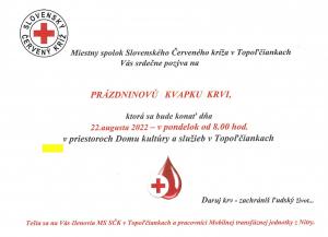 V pondelok 22. 8. 2022 sa bude konať Prázdninová kvapka krvi