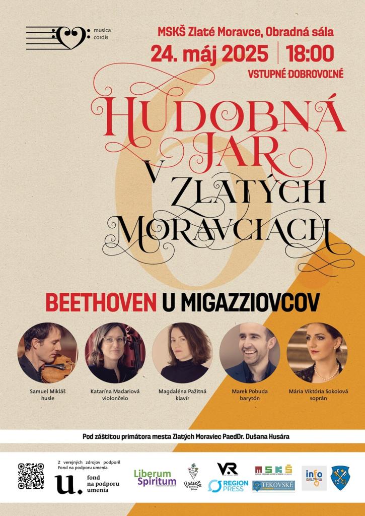 Festival 6. Hudobná jar v Zlatých Moravciach otvára brány do minulosti jedinečným koncertom "Beethoven u Migazziovcov". Predstavte si večer plný vášne a emócií, kde tóny majstrovského Klavírneho tria c-mol Ludwiga van Beethovena prenikajú priestorom.