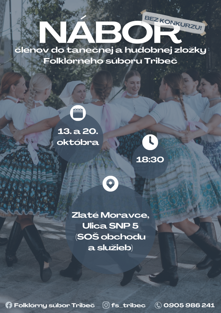 Folklórny súboru Tribeč organizuje nábor nových členov do hudobnej a tanečnej zložky Folklórneho súboru Tribeč.