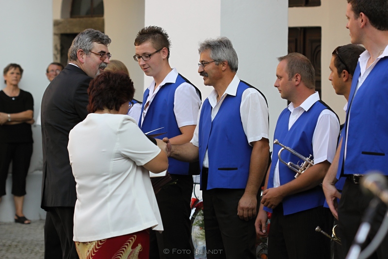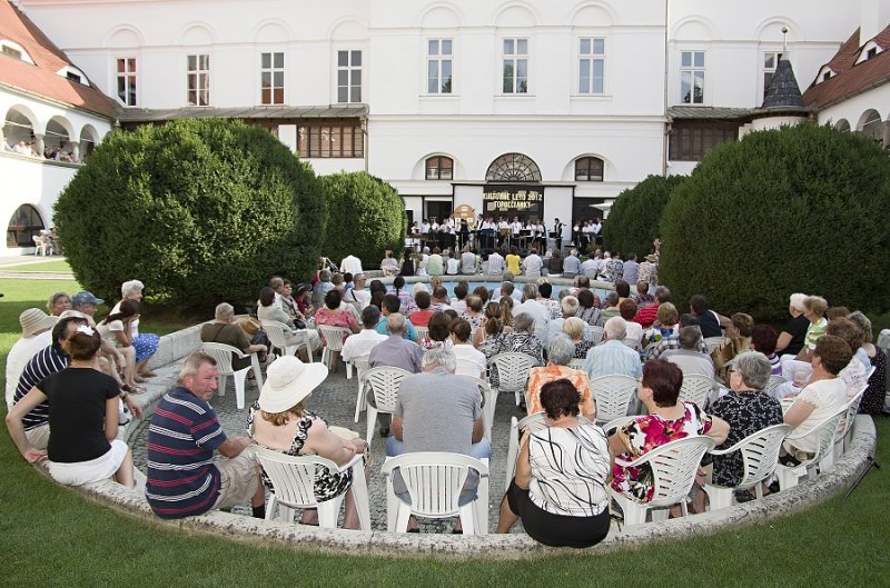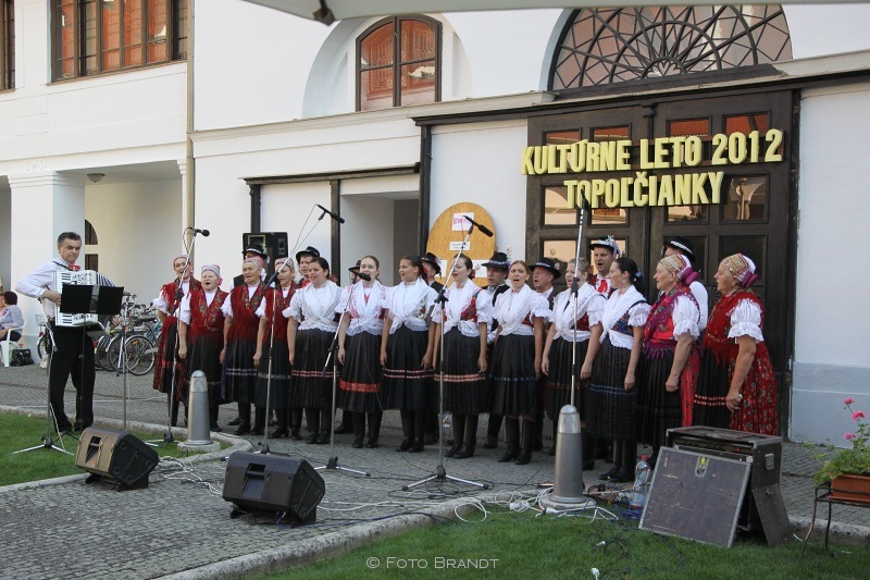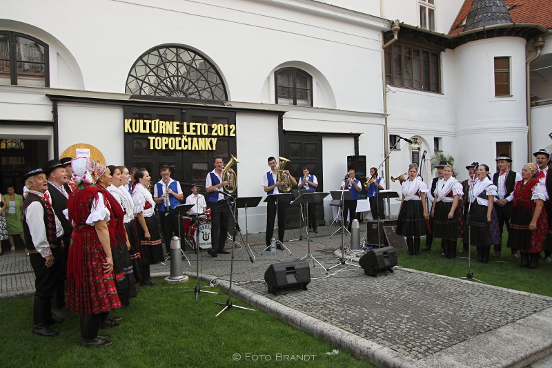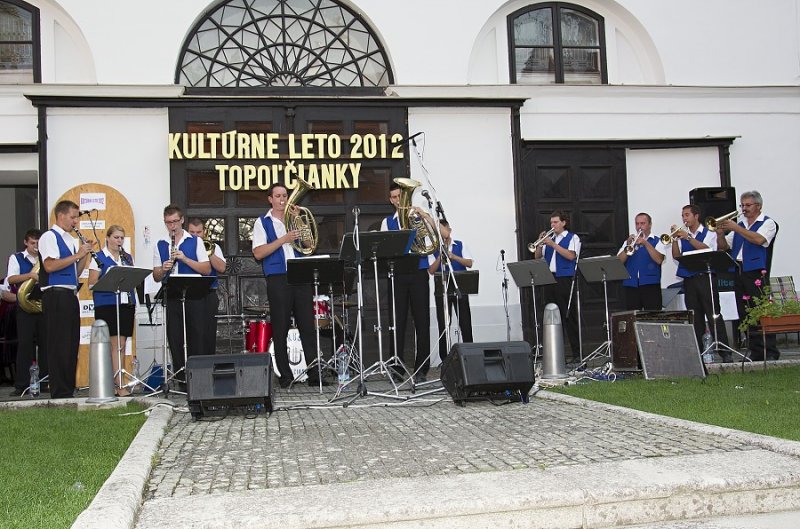 V nedeľu, 5. augusta 2012 sa konalo šieste vystúpenie v rámci Kultúrneho leta 2012, spojené so slávnostnou príležitosťou, akou je z pohľadu histórie, oslava úctyhodného 130. výročia vzniku dychovej hudby v Topoľčiankach. Sme úprimne radi, že pozvanie prijali bývalí a súčasní hudobníci DH Podhrušovan, veľká rodina niekoľkých generácií, ktorých spája nadšenie a láska k dychovej hudbe. Sme radi, že pozvanie prijali aj naši spoluobčania a návštevníci Topoľčianok, ktorých záujem a potlesk je pre účinkujúcich vždy tou najkrajšou odmenou a súčasne motiváciou do budúcnosti.