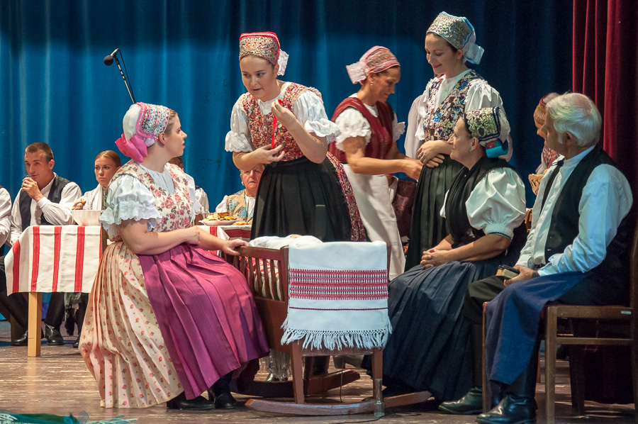 V nedeľu 31. augusta Folklórna skupina Topoľnica priblížila vo folklórnom pásme s názvom „Krštenie kedysi“ aj mladším generáciám zvyky a tradície, ako kedysi v Topoľčiankach prebiehali krstiny a čo všetko s nimi súviselo. Celé pásmo bolo sprevádzané krásnymi ľudovými piesňami. V čase, kým sa na pódium presunuli a pripravili druhý účinkujúci hostia – DH Podhrušovan, predstavil starosta obce Topoľčianky, p. Juraj Mesko prítomným hosťom v hľadisku novú publikáciu o histórii Topoľčianok s presným názvom „Stručné dejiny Topoľčianok“, ktorú si záujemcovia mohli prvý krát zakúpiť práve v tento deň. Následne po príhovore pána starostu sa prítomným hosťom prihovorila aj autorka spomínanej publikácie o histórii Topoľčianok, pani Anna Lukáčová a vyjadrila úprimnú radosť z toho, že mohla „Stručnými dejinami Topoľčianok“ obohatiť naše poznanie o tie najdôležitejšie informácie z histórie našej obce od roku 1293. Zároveň pripomenula, že Národopisné múzeum obce Topoľčianky, ktorého je zakladateľkou a správkyňou, si v týchto dňoch pripomenulo úctyhodné jubileum a to 30 rokov existencie od svojho vzniku, za čo sme jej vyjadrili srdečné poďakovanie v mene nás všetkých občanov Topoľčianok.