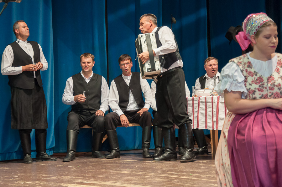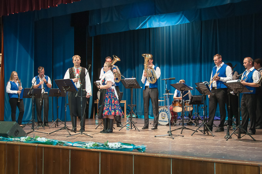 Následne sme sa v programe dostali do druhej polovice záverečného vystúpenia a na pódiu sme už mohli privítať chlapcov a dievčatá z DH Podhrušovan, ktorá je priamym nositeľom 130-ročnej tradície dychovej hudby v Topoľčiankach. V súčasnosti hráva v kapele 12 stabilných muzikantov predovšetkým z Topoľčianok doplnených muzikantmi z okolitých obcí, pričom o umelecko-organizačné vedenie sa stará dvojica Peter Kotora a Jozef Šabo. Dychová hudba Podhrušovan vystupuje predovšetkým na obecných kultúrno-spoločenských podujatiach a na podujatiach v okolitom regióne. Jej repertoár tvoria predovšetkým Slovenské, ale aj Moravské a České orchestrálne a ľudové piesne upravené známymi slovenskými a českými skladateľmi, ktorými potešili hostí v publiku aj na tomto vystúpení.