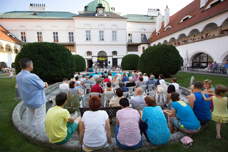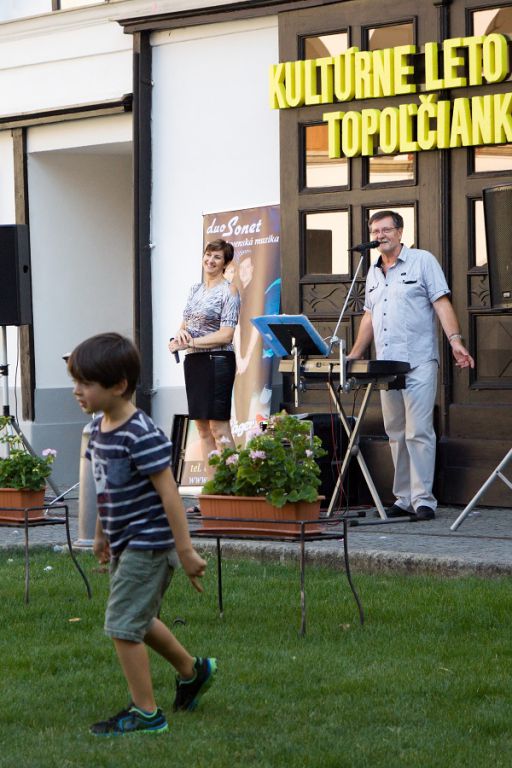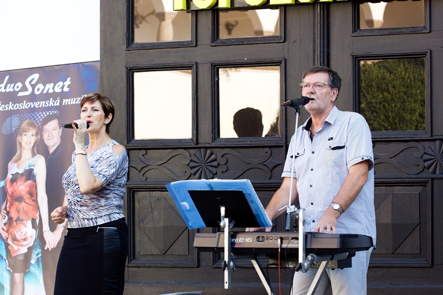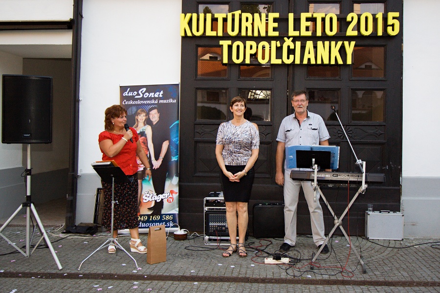 V nedeľu 9. augusta 2015 na ďalšom vystúpení v rámci programu Kultúrneho leta 2015 si mali možnosť návštevníci vypočuť krásne melódie v podaní členov skupiny Duo Sonet Zdenky a Miroslava Feriancových, ktorí si získali srdcia divákov a poslucháčov na Slovensku aj v Čechách aj vďaka ich účinkovaniu v televíznej relácii Šláger TV. Zazneli krásne ľudové piesne, ale piesne z pera člena skupiny p. Miroslava Ferianca – Keď Sonet vyhráva, Vyletela lastovička, Pod horama, Letná láska a ďalšie. Ich piesne často zaznievajú na rôznych akciách a podujatiach, jednoducho všade tam, kde chcú ľudia prežiť príjemné chvíle pri dobrej hudbe a v žánroch pre všetkých. A príjemné chvíle, dobrú náladu a zábavu vytvorili aj počas nedeľného popoludnia na nádvorí zámku. Prajeme im do ďalších rokov účinkovania veľa divákov, poslucháčov a veľa tvorivých úspechov!