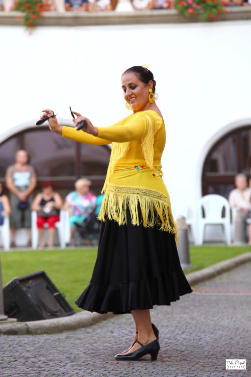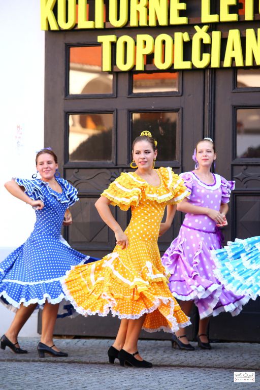 Dni a týždne letných dovolenkových a prázdninových mesiacov ubehli rýchlejšie ako by sme si želali, až sme sa dostali k záverečnému vystúpeniu v rámci programu „Kultúrne leto 2015“ a na nádvorí Zámku Topoľčianky sme v nedeľu 30. augusta, privítali tanečníkov Umeleckého súboru Andalucia v rytme španielskych tancov Flamenco. Umelecký súbor začal AKO PRVÝ NA SLOVENSKU šíriť túto španielsku ľudovú kultúru. V Bratislave pôsobí od roku 1988 vďaka choreografke a riaditeľke Mgr. art Vierke Masarykovej. Inšpiráciu pre prácu čerpajú choreografka a jej dcéra, pedagogička a sólistka Lucka, pravidelne na tanečných kurzoch v Španielsku v regióne Andalucia. Umenie flamenco patrí k najťažším a najnáročnejším tanečným prejavom na svete a to vďaka hlbokému precíteniu a viacerým súčasným rytmom jednotlivých častí tela. Repertoár súboru tvorili všetky základné druhy tancov flamenca z celej oblasti Andalucie. V programe vynikli prekrásne kostýmy Anny Klementovej, hra na kastanety, potlesky, originálna španielska hudba, ukážka veselej fiesty, temperament a rytmus. Zaujímavou časťou a príjemným prekvapením bol aj blok tancov "Noc v Alhambre" s ukážkou arabského folklóru – bellydance. To všetko prispelo k tomu, že návštevníci si odniesli z vystúpenia krásny a nezabudnuteľný kultúrny a umelecký zážitok. Vystúpenie US Andalucia bolo skvelým zavŕšením a ukončením XIII. ročníka „Kultúrneho leta“ v Topoľčiankach.