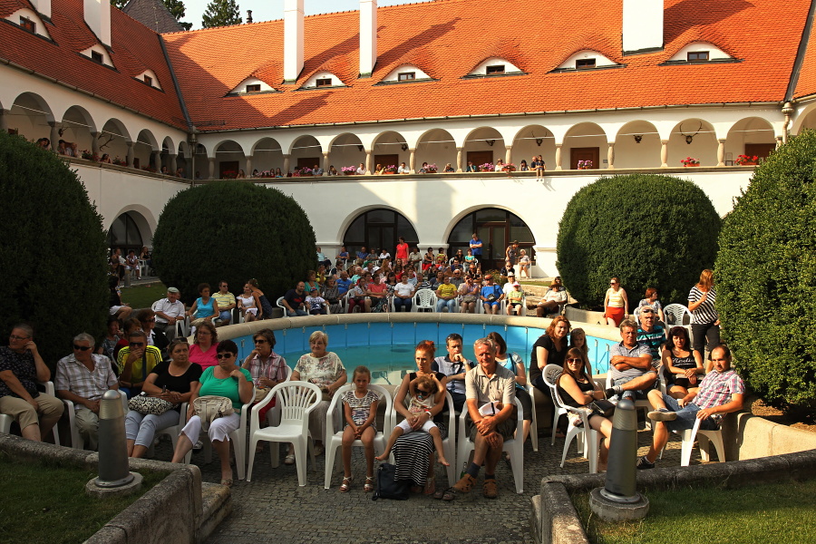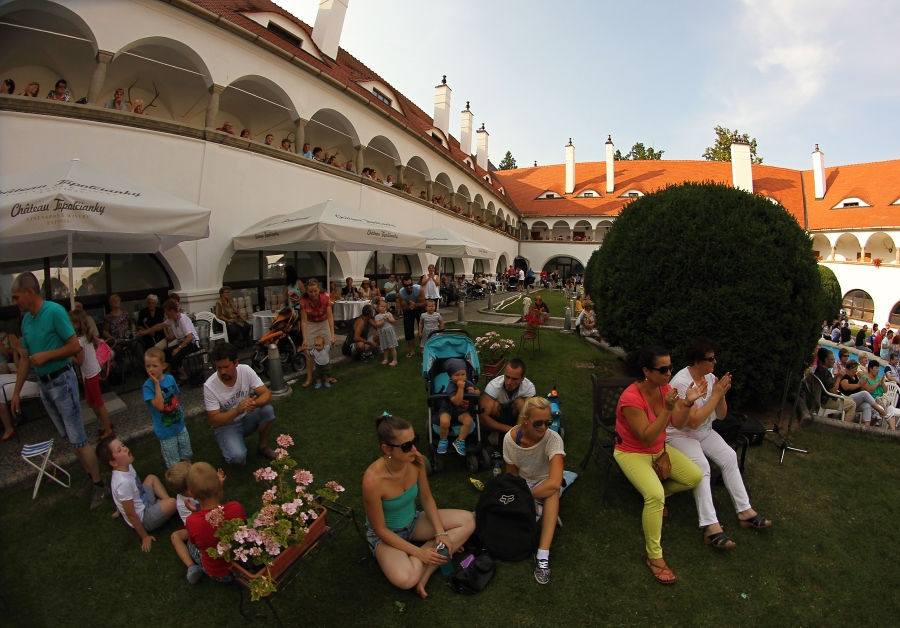 V nedeľu, 12. júla o 17:00-ej hodine, po úvodnom privítaní všetkých prítomných a účinkujúcich hostí sme na druhom koncerte v príjemnom prostredí národnej kultúrnej pamiatky – nádvoria Zámku v Topoľčiankach v rámci programu Kultúrne leto 2015, ktorého spoluorganizátormi sú už tradične Obec Topoľčianky v spolupráci s JMF ZOO SR stredisko Zámok Topoľčianky, privítali na pódiu druhého účinkujúceho hosťa, ktorým bola hudobná skupina TEAM REVIVAL z MARTINA.