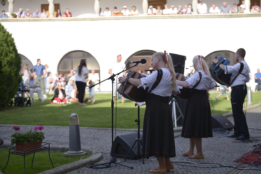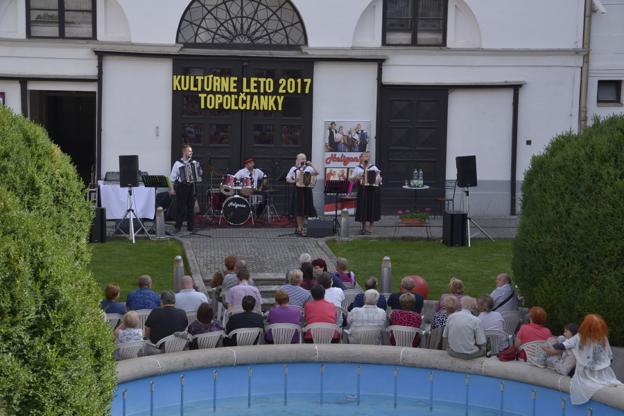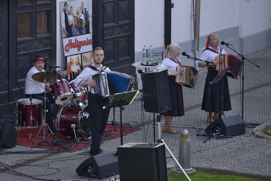 Tento krát sa domáci a návštevníci Topoľčianok mohli tešiť na koncert očakávanej a z TV Šláger známej a populárnej Kapely Heligonica, ktorá na hudobnej scéne pôsobí od apríla 2016. Kapelu tvoria štyria skvelí muzikanti zo štyroch regiónov Slovenska: z Kysúc, z Turca, zo stredného a z dolného Považia. Ako prezrádza názov kapely, dominantou v nej je jeden z najkrajších hudobných nástrojov – heligónka, doplnená rytmickými bicími nástrojmi. Ich muzika je úplne odlišná od tradičných ľudových kapiel, ktoré prenášajú zvyky a tradície svojich regiónov do svojich piesní. Kapela Heligonica skĺbila štyri regióny do jedného a ich pieseň má v sebe prvky napr. tradičnej slovenskej dychovky z oblasti Považia kombinované so šťavnatou kysuckou melódiou a podobne. Celým programom nás milým sprievodným slovom sprevádzal bubeník a spevák kapely p. Erich Bučko. Známe krásne rytmické a melodické ľudové piesne v podaní štyroch skvelých hudobníkov Kapely HELIGONICA určite potešili dušu aj srdiečko každého z prítomných hostí, ktorí to dávali najavo častým potleskom. Veríme, že ste strávili vďaka ľudovým piesňam zo štyroch regiónov Slovenska krásne a príjemné nedeľné popoludnie. Kapele HELIGONICA želáme do budúcna aj naďalej mnoho nadšených poslucháčov a skvelých koncertov. V mene spoluorganizátorov, ktorými sú Obec Topoľčianky a JMF ZOO v SR, stredisko Zámok Topoľčianky Vás pozývame opäť o týždeň, 23. júla na ďalší koncert, na ktorom si budete môcť vypočuť známe svetové hity a piesne E. Presleyho v podaní speváka z Bostonu Gregoryho Shaughnessyho a HS Flashback. Veríme, že Vám aj nasledujúcimi vystúpeniami v programe KL spríjemníme a obohatíme Vaše letné nedeľné popoludnia a dovidenia o týždeň!