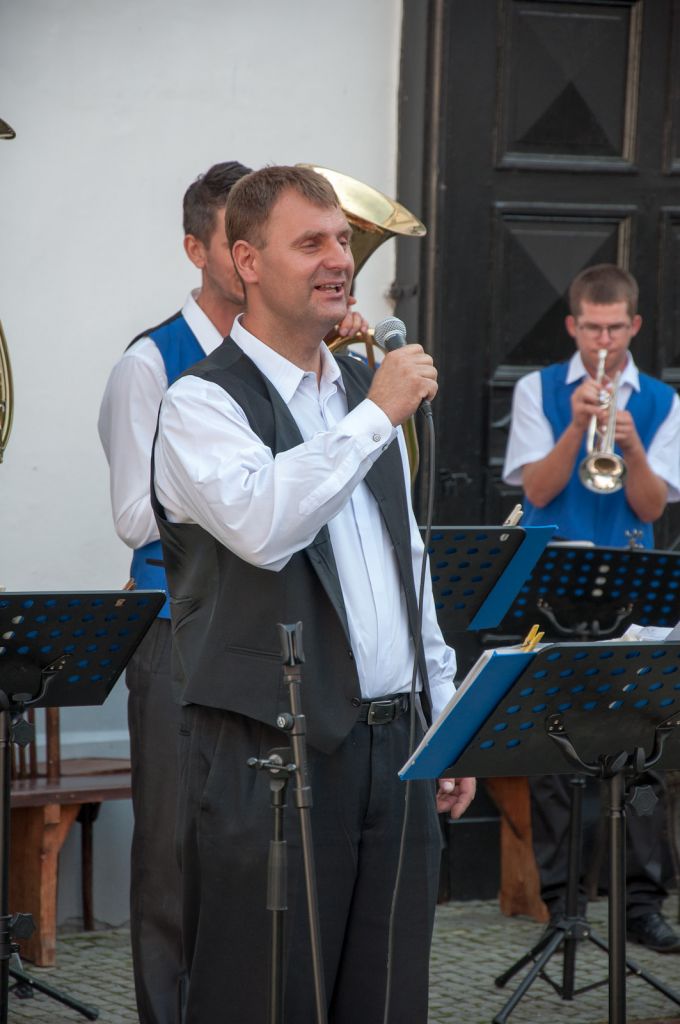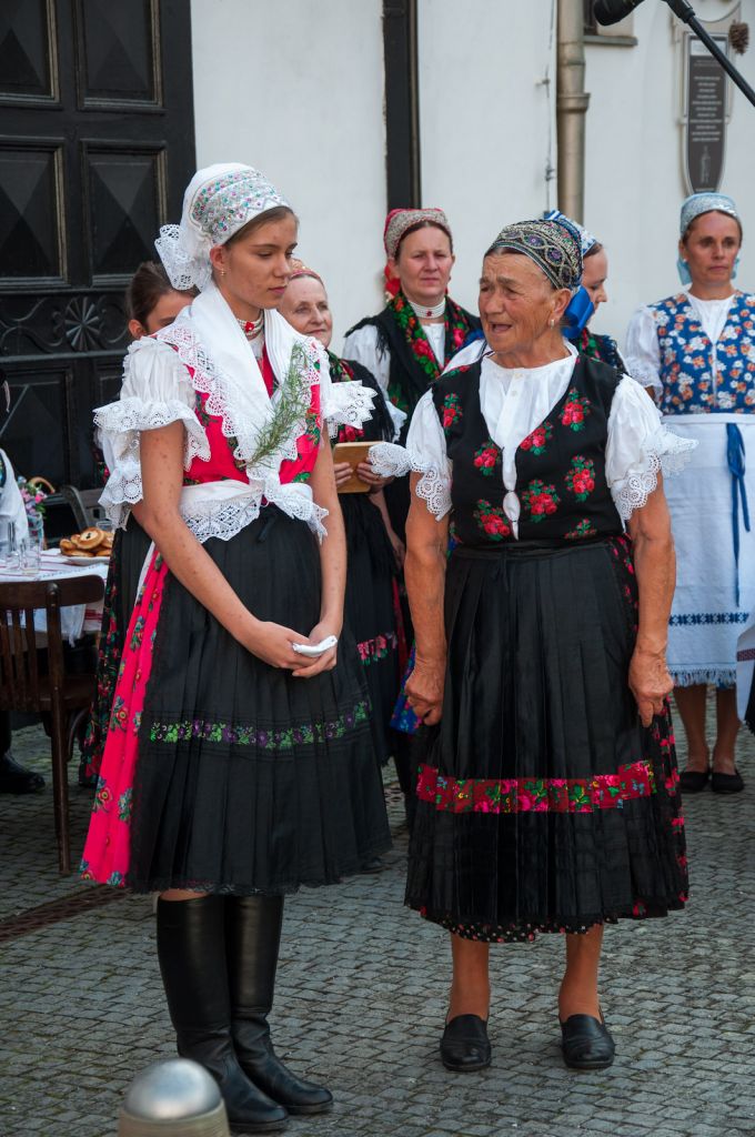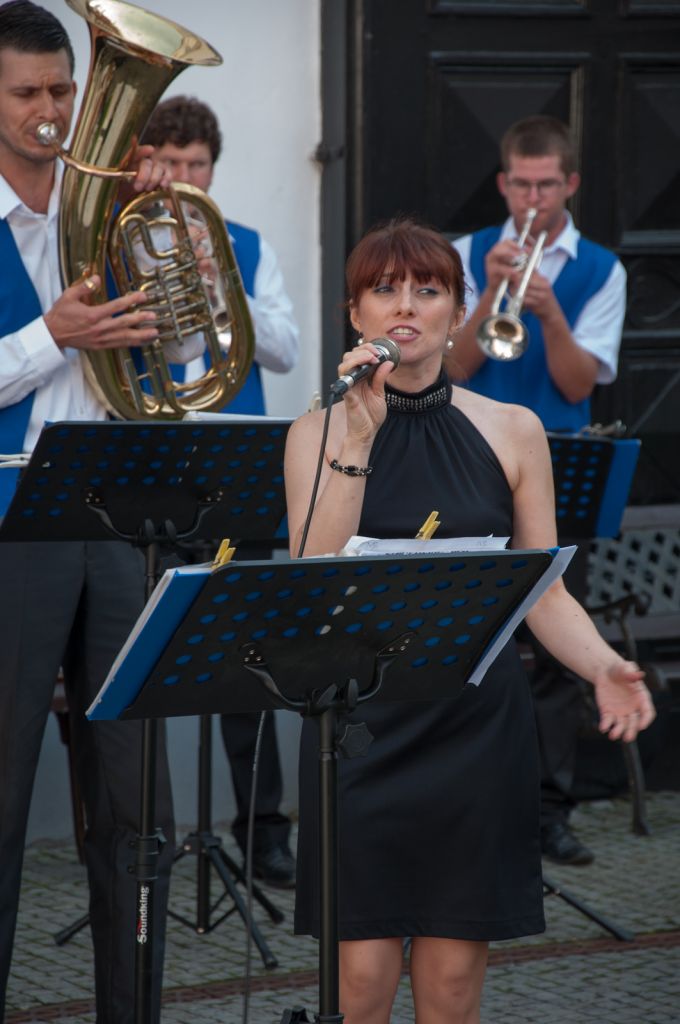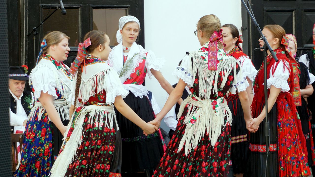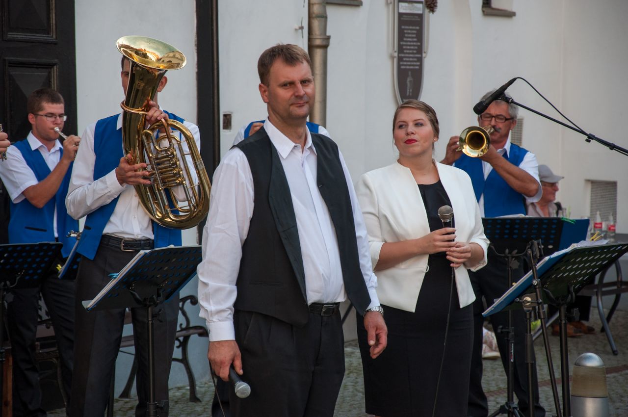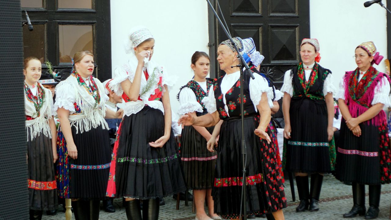 Folklórna skupina Topoľnica sa návštevníkom Kultúrneho leta predstavila folklórnym pásmom „Svadba v Topoľčiankach“ a priblížila tak aj mladším generáciám zvyky a tradície ako kedysi v Topoľčiankach prebiehali svadobné prípravy, svadba a čo všetko s ňou súviselo. Bližšie nás v úvode o pripravenom folklórnom pásme poinformovala vedúca skupiny, pani Danka Cigáňová. Druhým účinkujúcim hosťom bola DH Podhrušovan, ktorých veselé a temperamentné Slovenské, ale aj Moravské a České orchestrálne a ľudové piesne upravené známymi slovenskými a českými skladateľmi sa rozliehali celým historickým nádvorím zámku a potešili návštevníkov podujatia, ktorí si tie známejšie piesne mohli so sympatickou speváckou trojicou Dášou Kunkelovou, Lenku Pavlíkovou a Romankom Kováčom aj zaspievať. Záver nedeľného popoludnia KL ktoré nám spríjemnili a obohatili naše dva domáce súbory patril ich spoločnej piesni „Slovenské mamičky“, ktorou sa s publokom rozlúčili.