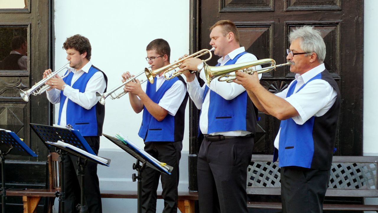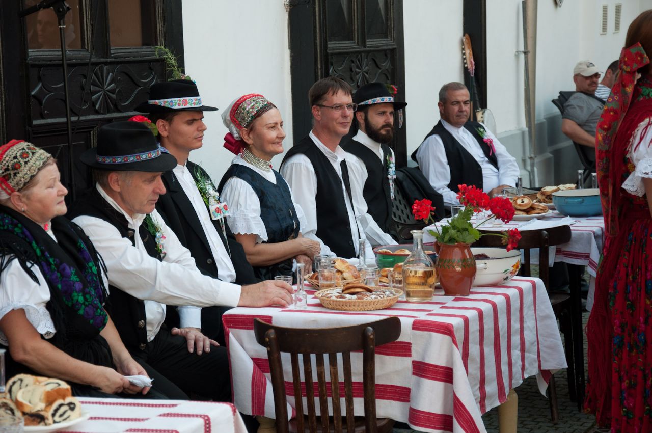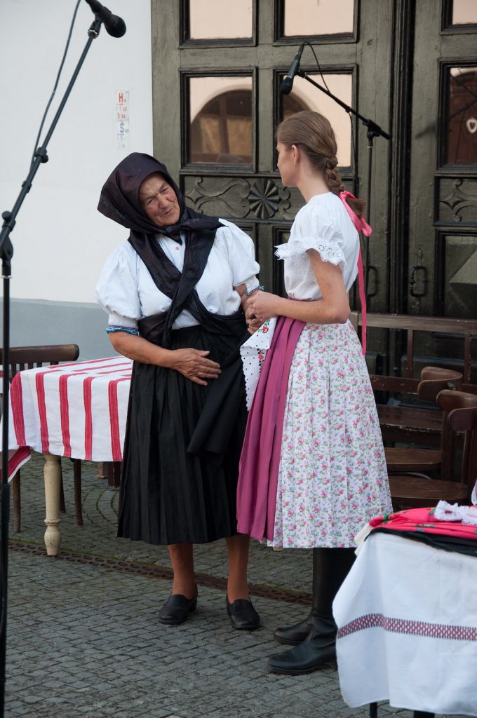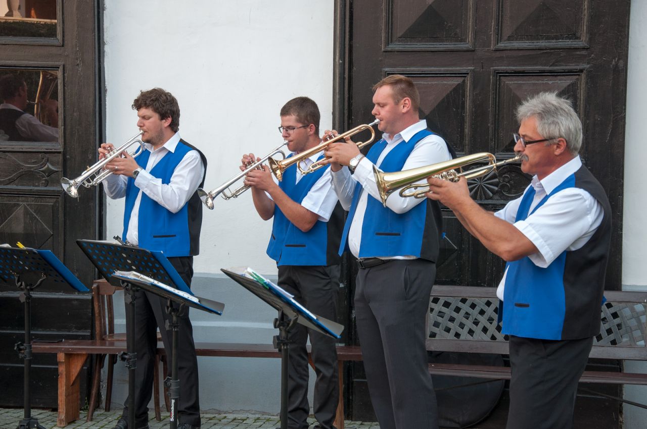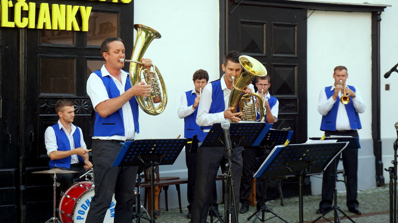 Folklórna skupina Topoľnica sa návštevníkom Kultúrneho leta predstavila folklórnym pásmom „Svadba v Topoľčiankach“ a priblížila tak aj mladším generáciám zvyky a tradície ako kedysi v Topoľčiankach prebiehali svadobné prípravy, svadba a čo všetko s ňou súviselo. Bližšie nás v úvode o pripravenom folklórnom pásme poinformovala vedúca skupiny, pani Danka Cigáňová. Druhým účinkujúcim hosťom bola DH Podhrušovan, ktorých veselé a temperamentné Slovenské, ale aj Moravské a České orchestrálne a ľudové piesne upravené známymi slovenskými a českými skladateľmi sa rozliehali celým historickým nádvorím zámku a potešili návštevníkov podujatia, ktorí si tie známejšie piesne mohli so sympatickou speváckou trojicou Dášou Kunkelovou, Lenku Pavlíkovou a Romankom Kováčom aj zaspievať. Záver nedeľného popoludnia KL ktoré nám spríjemnili a obohatili naše dva domáce súbory patril ich spoločnej piesni „Slovenské mamičky“, ktorou sa s publokom rozlúčili.