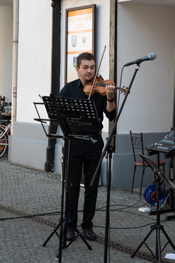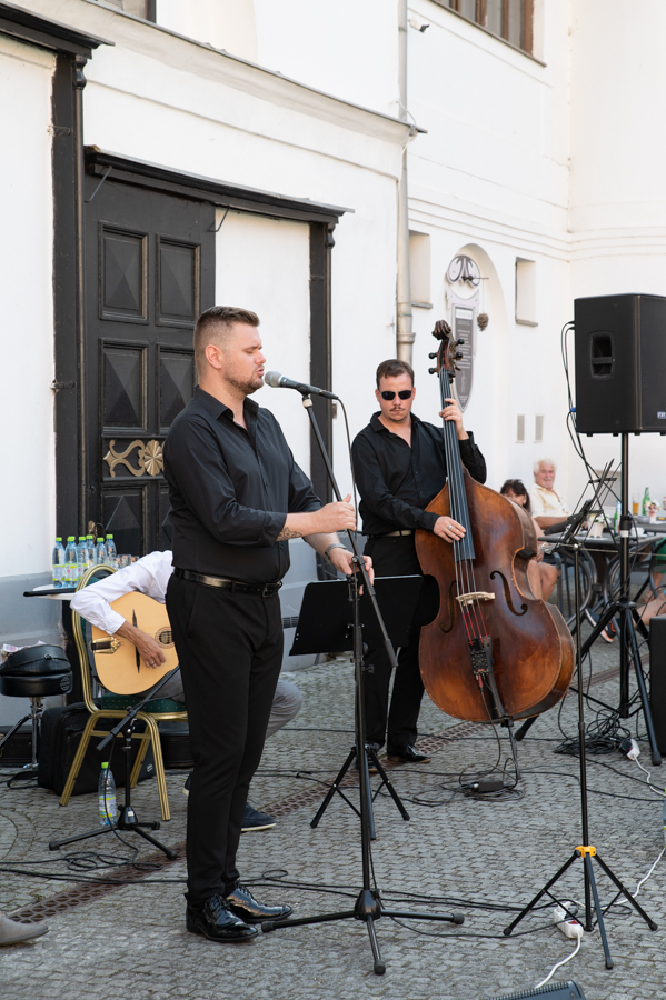 V nedeľu 15. augusta sme na javisku, ktorého pozadie tvorí klasicistické krídlo zámku, privítali účinkujúcich hostí, skupinu mladých hudobníkov SLOVAK TANGO, ktorá sa zameriava na interpretáciu slovenskej populárnej piesne 30. až 50. rokov minulého storočia a prináša tak poslucháčom slávne evergreeny slovenskej populárnej scény z dielní Gejzu Dusíka, Pavla Čádyho, Pavla Braxatorisa, Dušana Pálku, ktoré preslávili vtedajšie hviezdy ako František Krištof Veselý, Melánia Olláryová, či Jozef Kuchár a iní. A tak sme sa spolu s hudobníkmi a piesňami v ich podaní pomyselne posunuli v čase do minulého storočia a započúvali sa do čara hudby z obdobia, keď muži boli dokonalí gentlemani a ženy pravými dámami s jemnou eleganciou a noblesou.