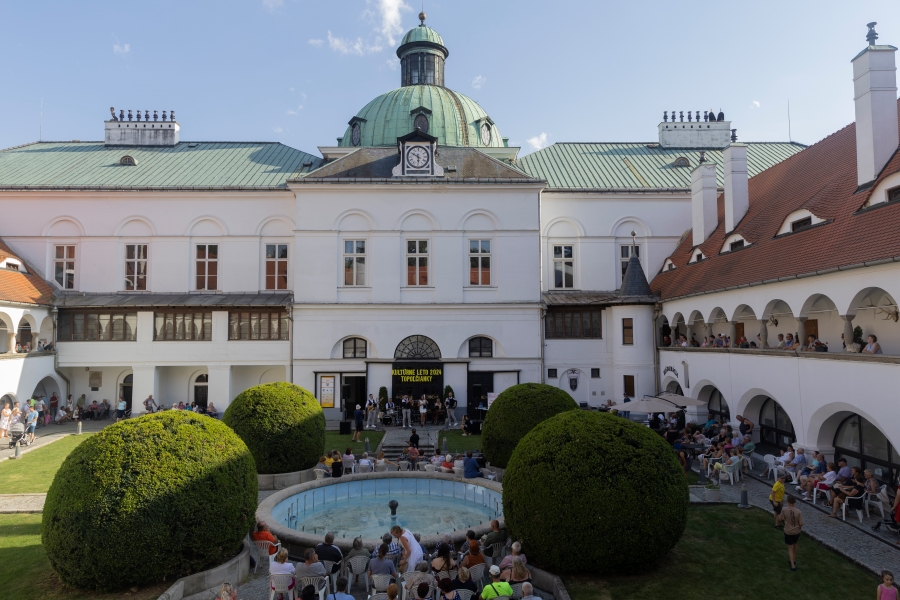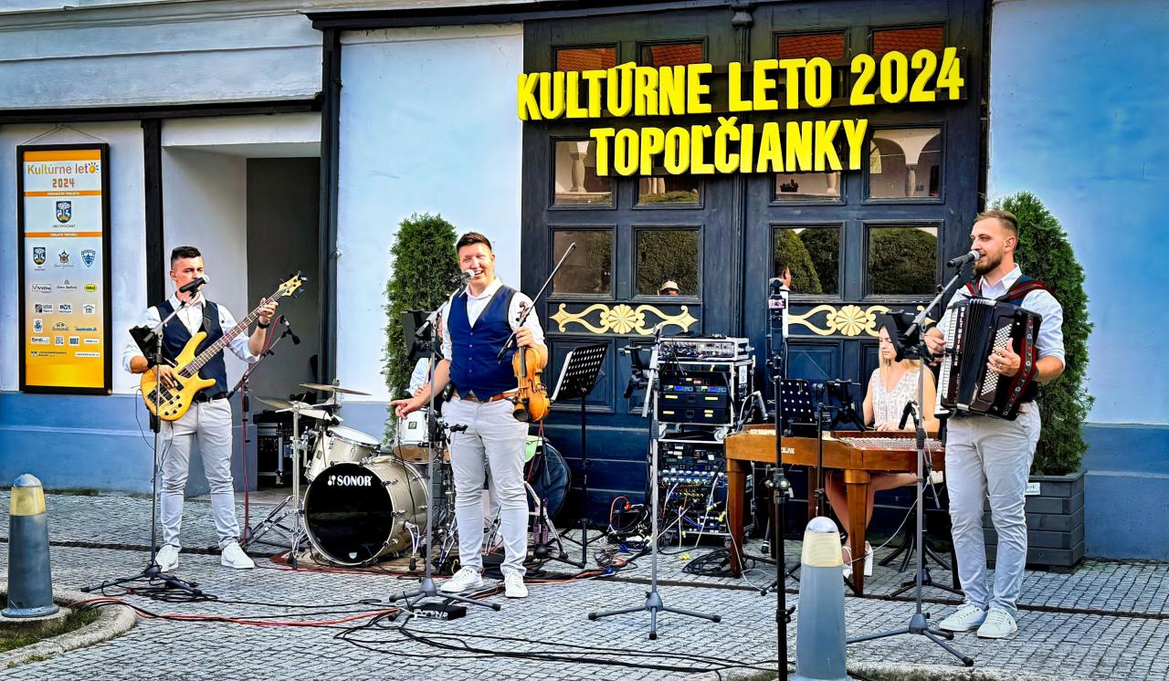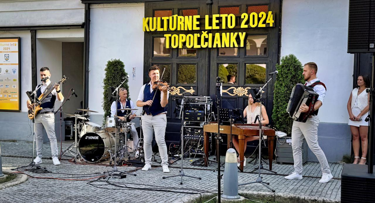 Dni, týždne a mesiace počas kalendárneho roka prebiehajú čoraz rýchlejšie ako by sme si priali. Opäť prešlo obdobie ďalšieho kalendárneho roka a my máme možnosť stretávať sa každú nedeľu počas mesiaca júl, t. j. 4 krát a tiež 1. septembra na vystúpeniach v rámci programu Kultúrne leto na nádvorí Zámku Topoľčianky, alebo v prípade nepriaznivého počasia v priestoroch veľkej sály DKS Topoľčianky. Ostatné podujatia v rámci programu KL 2024 sa budú konať od 2. augusta do 7. septembra v centre obce, okrem 10. augusta - štadión Tatran. Veríme, že Vám jednotlivými kultúrnymi podujatiami spríjemníme a obohatíme Vaše letné popoludnia a v prípade letného kina - piatkové podvečery. V nedeľu 7. júla sme príhovorom starostu obce Topoľčianky, p. Juraja Mesku otvorili XXII. ročník Kultúrneho leta a privítali sme v krásnom prostredí historického klasicisticko-renesančného nádvoria zámku prvého účinkujúceho hosťa, bola ním kapela Huncúti od Trenčína. Ich hudobný repertoár bol pestrý, návštevníci podujatia si vypočuli skladby mnohých žánrov. Ľudové i moderné piesne - valčíky, polky, čardáše / pop, rock, folk - to všetko nám zahrali Huncúti. Ďakujeme mladej skvelej kapele za úžasný koncert, príjemnú atmosféru, za všetky krásne piesne ktoré sme si v tento deň vypočuli a ktorými obohatili naše nedeľné popoludnie. Kapele želáme do budúcna aj naďalej mnoho skvelých koncertov a nadšené publikum. Keďže žiadne vystúpenie by nemalo tú správnu atmosféru, keby nemalo svojich divákov, poďakovanie patrilo aj Vám v publiku, ktorí ste prijali pozvanie na koncert, pretože Váš záujem a potlesk je pre účinkujúcich a tiež aj pre organizátorov tou najkrajšou odmenou a motiváciou zároveň. Srdečné poďakovanie vyjadrujeme aj sponzorom, ktorí nám pomohli finančne zabezpečiť jednotlivé podujatia. Ich mená môžete vidieť počas vystúpení na reklamnom panely v pozadí javiska.