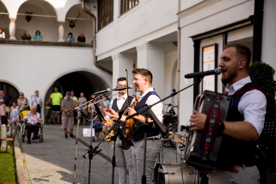 historického klasicisticko-renesančného nádvoria zámku, prvého účinkujúceho hosťa, bola ním kapela Huncúti od Trenčína.