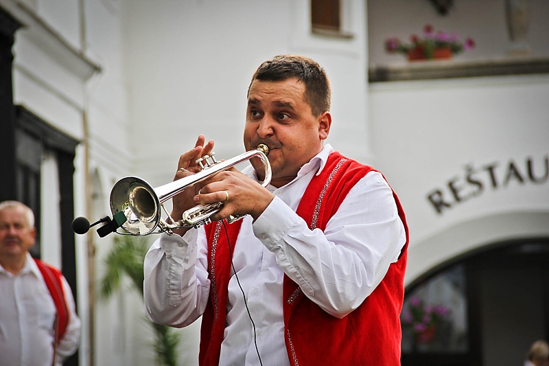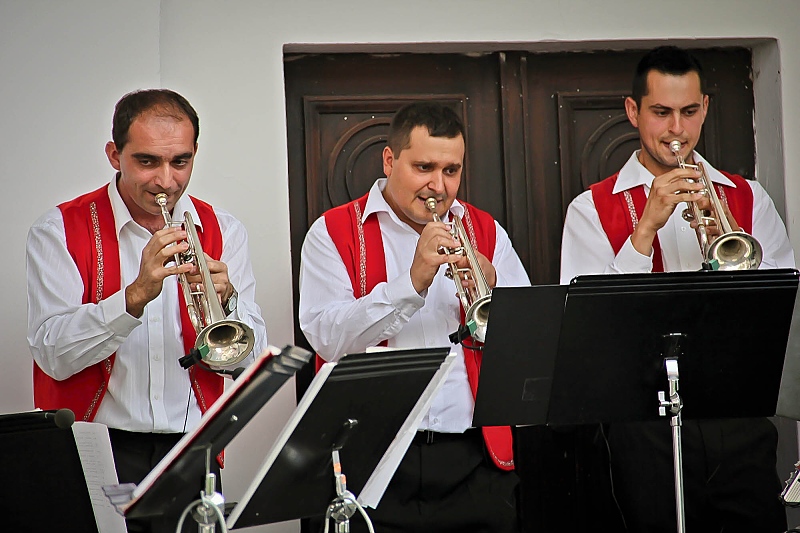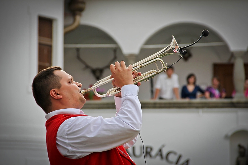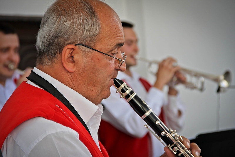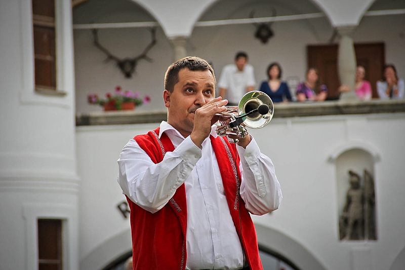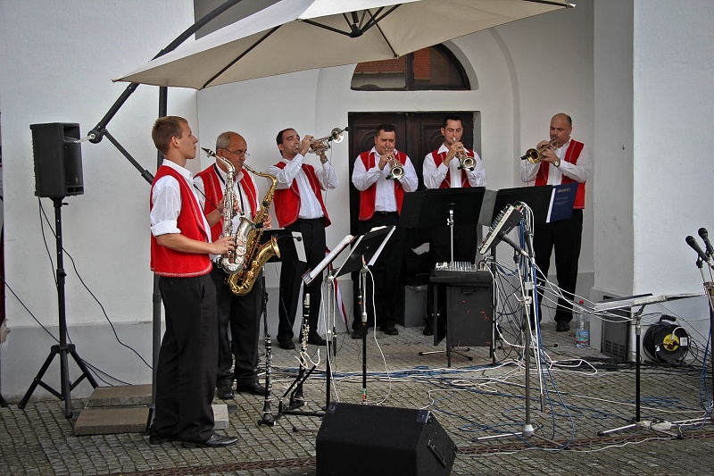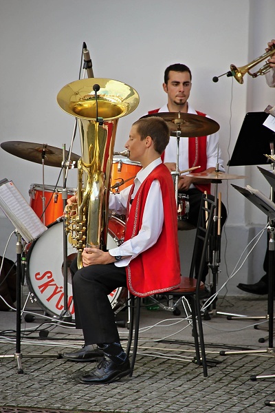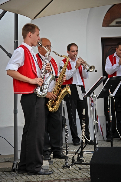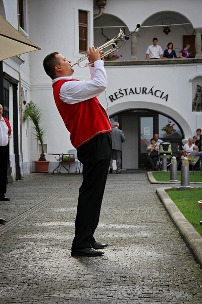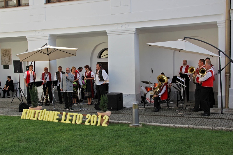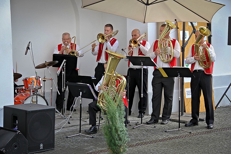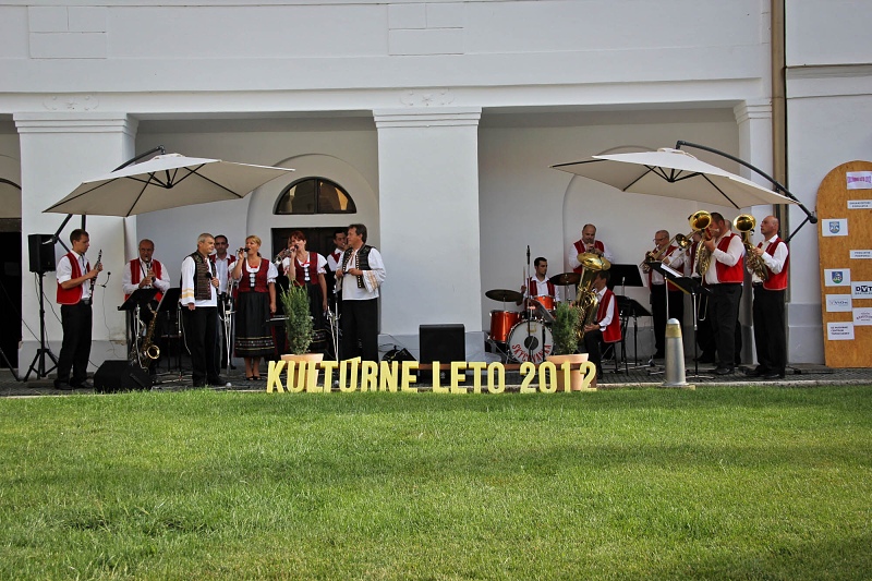 Nakoniec sa o 17-ej hodine ako na objednávku vyčasilo a ukázalo sa ešte aj slniečko, čo prispelo k celkovej príjemnej atmosfére tohto podujatia a dobrej nálade hostí, aj účinkujúcich. Dychovú hudbu Skýcovanka tvorí 18 členov, ktorí účinkujú pod vedením kapelníka a profesionálneho umeleckého vedúceho Štefana Juríka mladšieho, absolventa konzervatória v Žiline v odbore hra na trúbke a tiež absolventa Vysokej školy múzických umení v Bratislave v tom istom odbore. Počas vystúpenia na nádvorí klasicisticko–renesančného Zámku, zazneli svetoznáme hudobné skladby a evergreeny, ktoré určite potešili každého návštevníka. Sólo patrilo aj krásne znejúcim hudobným nástrojom ako sú trúbka a saxofón. Veríme, že návštevníci podujatia prežili vďaka členom dychovej hudby Skýcovanka krásne nedeľné popoludnie. Za skvelý kultúrny zážitok ďakujeme DH Skýcovanka. Tešíme sa opäť na ďalšie stretnutie a prajeme im, aby nadšenie a vytrvalosť s ktorou hudbu robia nikdy nestratili a aby im prinieslo odmenu v podobe množstva odohraných koncertov a nadšených poslucháčov.