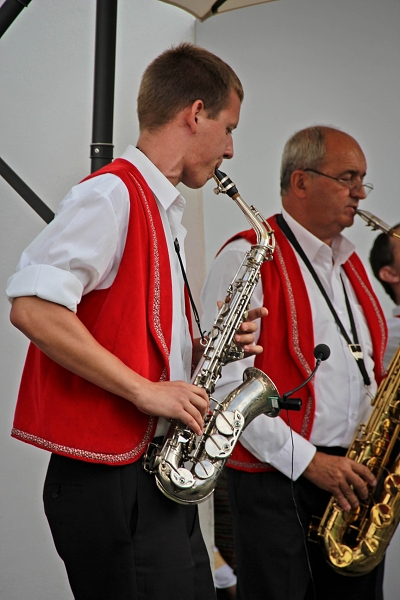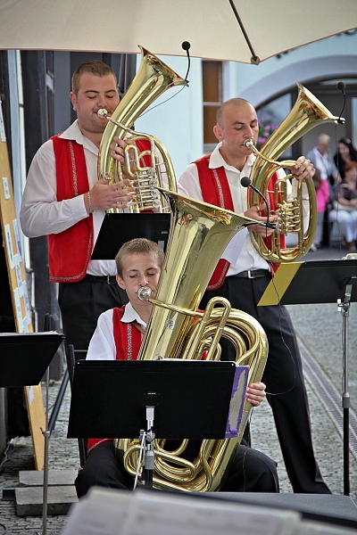 V nedeľu 15. júla spoluobčanom a návštevníkom Topoľčianok spríjemnila a obohatila nedeľné popoludnie v rámci programu Kultúrne leto 2012 dychová hudba Skýcovanka, zo susednej obce Skýcov. Počasie nám najskôr neprialo a v čase prípravy zvukovej aparatúry stále pršalo.