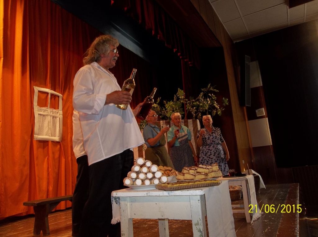 Skvelé divadelné predstavenie bolo doplnené humorným textom a množstvom veselých piesní so sprievodom harmonikára, ktoré si s hercami zaspievali aj návštevníci z publika. Všetci sme sa tak trošku presvedčili, že ten život mali naši starí a prastarí rodičia predsa len menej uponáhľaný, viac času venovali susedským a medziľudským vzťahom, posedeli spoločne mnohokrát aj na priedomí a pozhovárali sa navzájom o svojich radostiach a starostiach. Samozrejme, šikovné dedinské gazdinky vždy mali napečené aj chutné koláčiky, ktorými svojich hostí ponúkli a tentokrát mysleli aj na všetkých hostí v publiku, ktorých na záver predstavenia poponúkali.