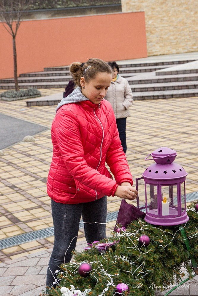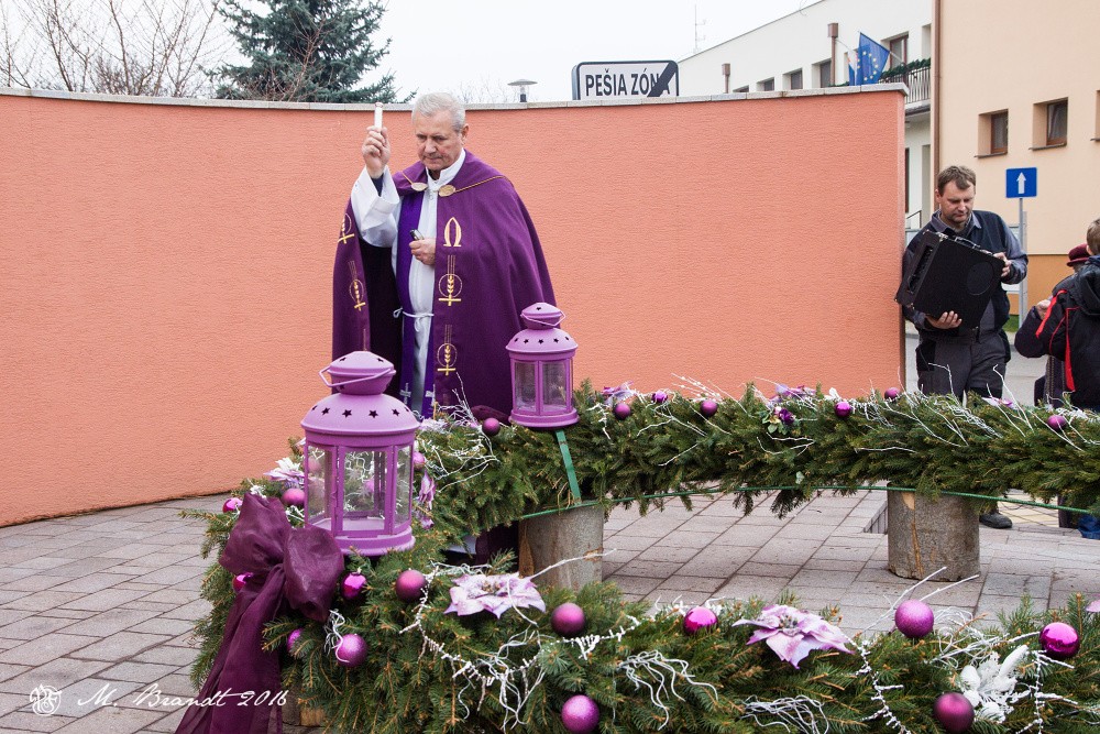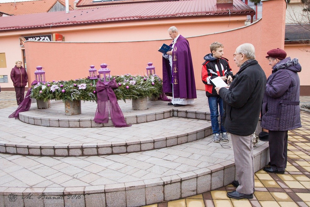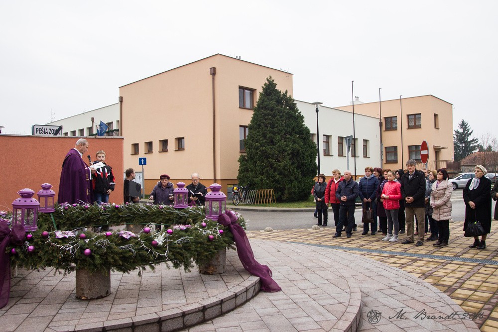 Požehnanie adventného venca v centre obce Topoľčianky