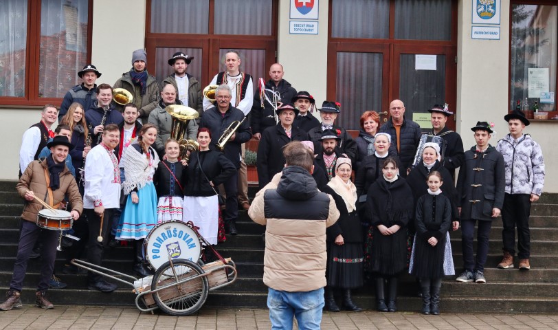 V sobotu 18. februára 2023 od 10.00 hodiny našou obcou, postupne jednotlivými ulicami, prechádzal fašiangový sprievod, ktorý tvorili členovia Folklórnej skupiny Topoľnica a Dychovej hudby Podhrušovan.